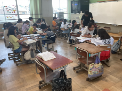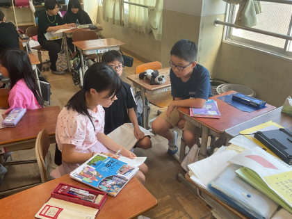 4年生が取り組んでいる自主学にも都度チェック。6年生らしく優しく教えてあげていました。