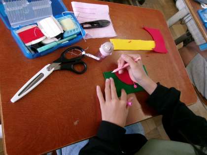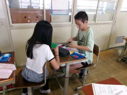 裁縫の学習が始まっています。裁ちばさみやまちばり等も使いながら、玉止め・玉結びの練習をしていました。