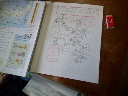 社会の調べのレベルが歴史単元になりよりレベルアップしている感じがします。書き写すだけでなく、自分の考えを書いたり、図でまとめたりと工夫の6年生です♪