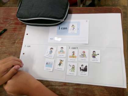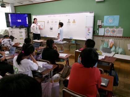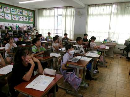 1学期に学習したことを生かして話していました。いろいろな表現を学習しましたね。自分のことを詳しく話すことができていました。