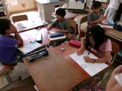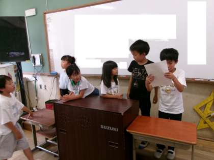 「もうお楽しみ会が始まっているのかな?」と思って、教室に入ったら、司会の練習でした。みんな色々、準備をしていました。成功しますように…。