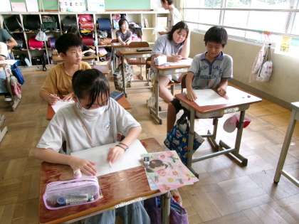 5年生もお話の絵の下描きを始めていました。どのくらいの大きさで描いたらいいか等、構成を考えている様子でした。