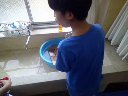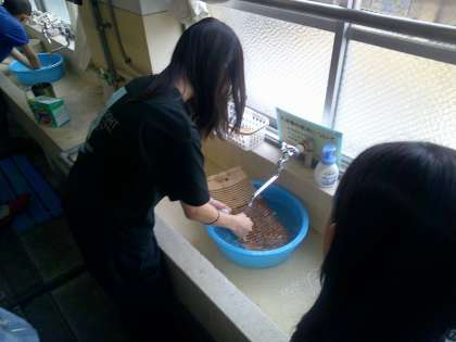 家庭科の学習で手洗いに挑戦しました。うまくできたかな♪