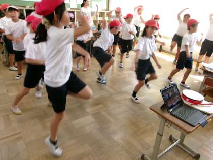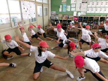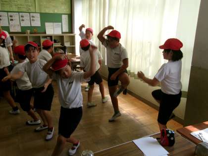 教室でエイサーの動きを確認していました。上手に踊っている子もいて、本番が楽しみでしかたありません。