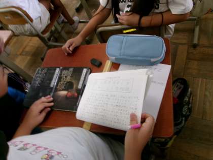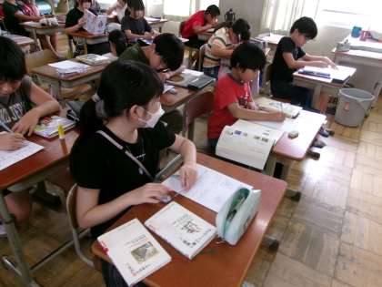 本の紹介カードを作っていました。おもしろい本を実際に教えてくれました。みんなでカードを見合いたいですね。