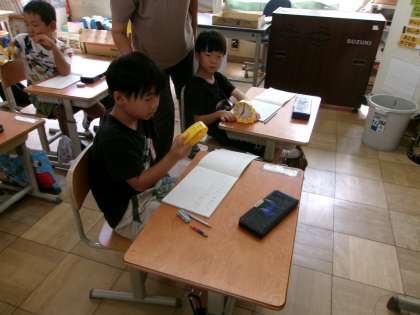 時計の学習をしていました。長い針と短い針がどこを指していれば、何時を示すのか学習している様子でした。