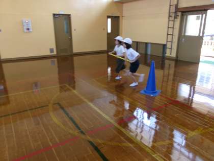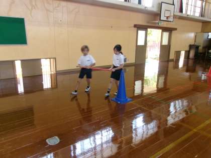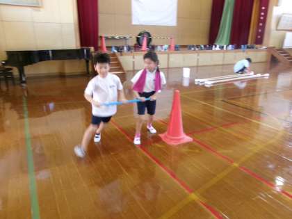 今日は、短い棒を使って、どんな競技なのか、少し体験をしていました。本番に向けて、がんばれ〜3年生!