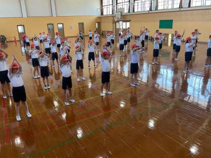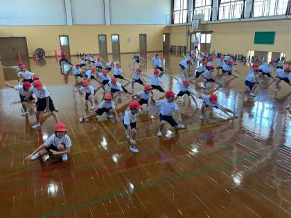 初めて体育館で練習しました。初めは,タブレットの動画を見ながら,ペア練習。その後,全体で動きを確かめました。