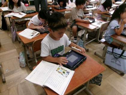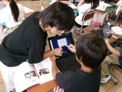 国語「どうぶつ園のじゅうい」の内容を表にまとめていました。ロイロノートを使って、先生から配布された資料を上手に活用していました。