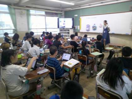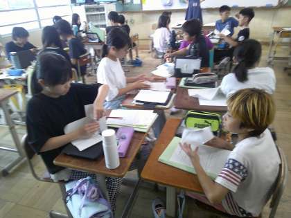 家庭科はコップに入れるならどんな袋がいいのかをタブレットを使って学習していました♪