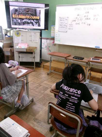 家庭科で「持続可能な社会へ」ということで、収入と支出のバランスについて考えていました。