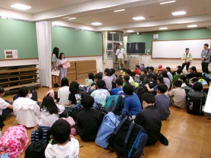 少し雨が降っていたので、多目的室で出発式を行いました。