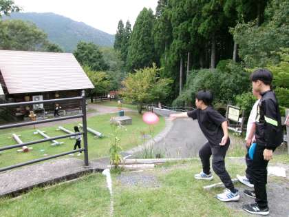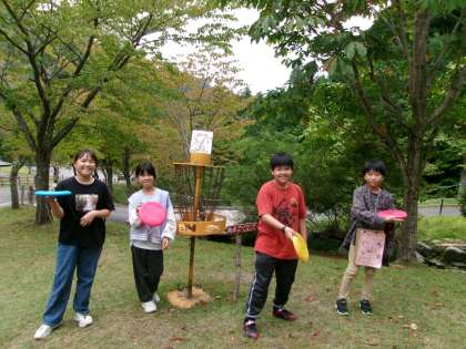 午後の活動は、フライングディスクゴルフ。