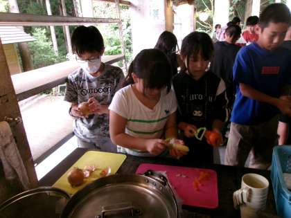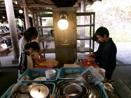 みんなで協力して、準備です。お皿を洗ったり、材料を切ったりしています。