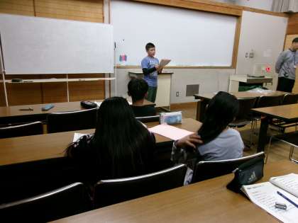 今日の活動のふりかえりをしました。司会係の子の進行のもと、健康観察をして養護の先生に報告しました。