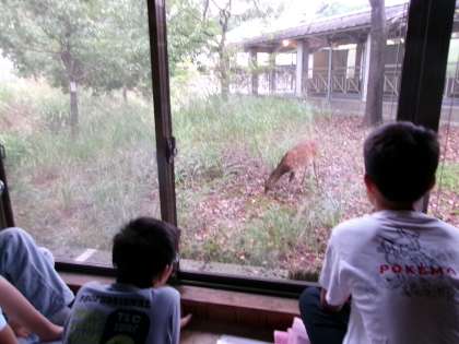 朝起きると、窓の外に鹿!子どもたちは喜んで見ていました。