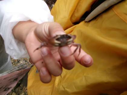 途中、サワガニを見つける子もいました。アカハライモリ(?)も見つけたそうです。