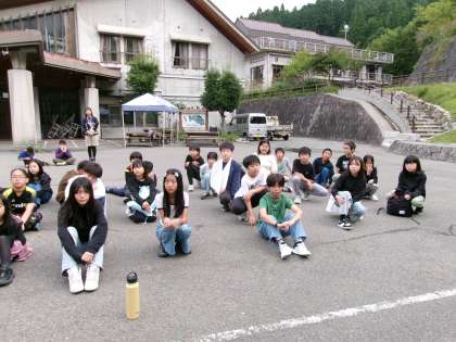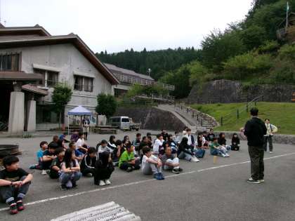 朝の集いをしました。この後、雨が降りました。