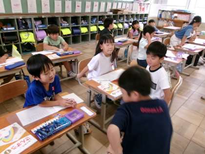 3つの数をたす計算に挑戦していました。初めて出合う問題に戸惑いながらも、みんなでがんばって解決していました。
