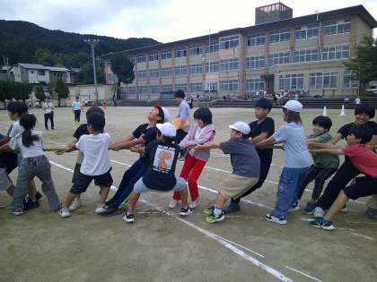 休み時間に綱引きの練習がありました。
