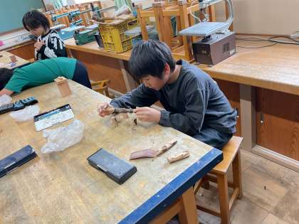 切れた木にやすりをかけたり、組み合わせを考えたりしていました。どんな物ができそうかな?