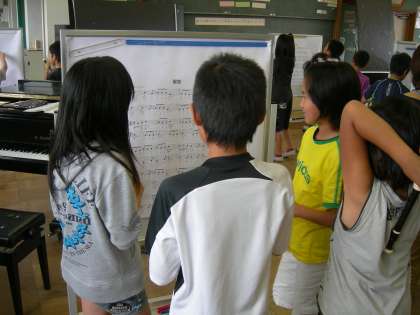 小・中学校9年間を通した取り組みを研究し,実践する,春日丘中学校,春日野小学校,日野小学校の三校教員の合同研究会,今年度第一回の研修会を日野小学校で行いました。各学年,あおぞらの授業を参観した後,児童生徒の意欲を高める指導や学力の問題などを話し合いました。