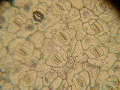 ホウセンカの気孔を観察するのに,葉の表面を剥ぎ取るのが難しかったので,今日はムラサキツユクサを用意しました。どの児童もプレパラートを作ることができ,気孔の数も多く観察しやすかったです。(写真は150倍)