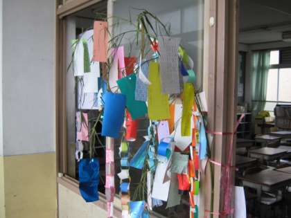 どのクラスも子どもたちの願い事や,飾り付けで笹が大きくしなってしまいました。
