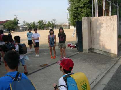 登校時,本部役員の児童があいさつ運動をしています。気持ちよくあいさつできる子を目指しての児童会の取り組みです。