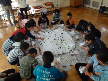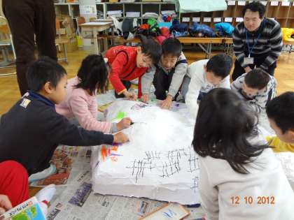 土台となる部分を協力して作り、みんなで楽しくたくさんの絵を