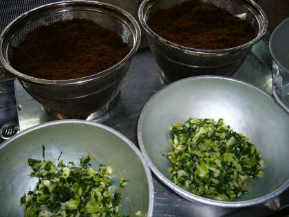 沖縄県産の「もずく」を使っています。もずく,たまねぎ,にんじん,チンゲン菜を