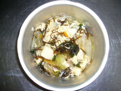 野菜の甘みとたまごのまろやかさ,そしてもずくのツルンとした食感が楽しめました。