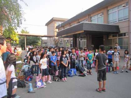 いよいよ花背山の家での長期宿泊学習が始まります。まず,学校で出発式を行いました。山の家でしかできない豊かな自然体験をしてほしいと思います。5日間,保護者の方とも離れて過ごしますが,見守ってください。
