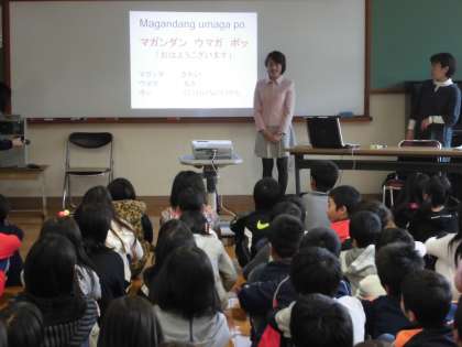 5日(火)にフィリピン出身の講師の先生に来ていただき,フィリピンの国の文化についての話を聞きました。フィリピンの挨拶の言葉や食べ物,街の様子について詳しく知ることができました。品物の値段は違いますが,日本にある「セブンイレブン」や「すき屋」「ユニクロ」もフィリピンにあると知って子どもたちはとても興味をもっていました。5年生にもフィリピン出身のお友達がいるので,話を聞いてより身近に感じることができたと思います。