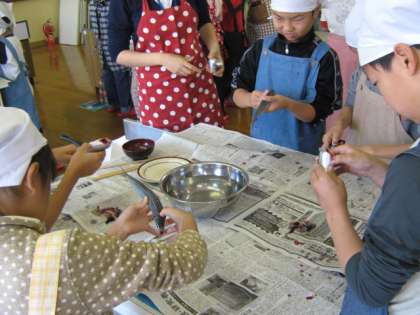 中央卸売市場の方が,鰯を持ってきてくださいました。魚の調理の仕方も学習しました。鰯を手開きで開きました。