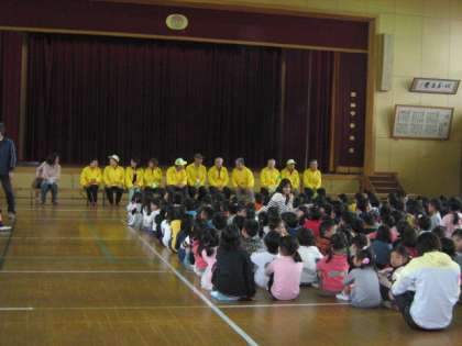 感謝の会は体育館で行われ,みまもり隊の方からはあいさつの大切さをお話していただきました。毎日元気にあいさつをして日野小学校から変わっていこうと子どもたちに伝えてくださいました。