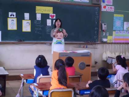 中野先生と一緒に給食を食べ,子どもたちみんなにこにこでした!