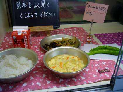 給食室では,子どもたちに「からいものがあたらないように」と,