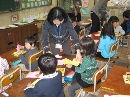 この4月になれば入学してくる児童を対象にしたもので,1年生の教室で「音楽をしたり」「図工をしたり」しました。