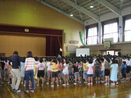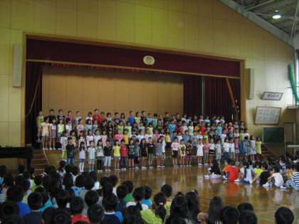 今日は音楽朝会の日です。朝から雨が降っているので,運動場では遊べませんが,教室からは子ども達の元気な声が聞こえてきます。