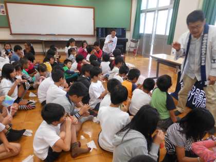 本日5,6時間目に京扇子を作る体験をさせていただきました。丁寧に色塗りをしてきた和紙に骨をいれ,完成することができました。細かい作業に,少し困っていった子どもも見られましたが,プロの方々の教えをうけ,無事全員に仕上げることができました。いい思い出の品になったのではないかと思います。ぜひご家庭でも声をかけていただきたいです。