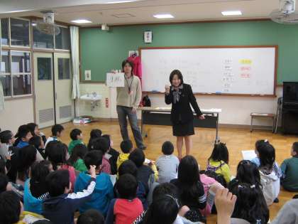 中国の言葉やジャンケンなどについて教えていただきました。子ども達にとっては初めて聞くことが多く興味深く耳を傾けていました。
