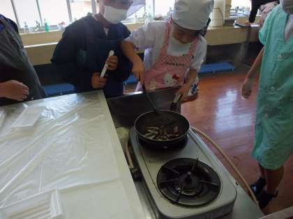そのあと,いわしの手開きをし,蒲焼をしていただきました。