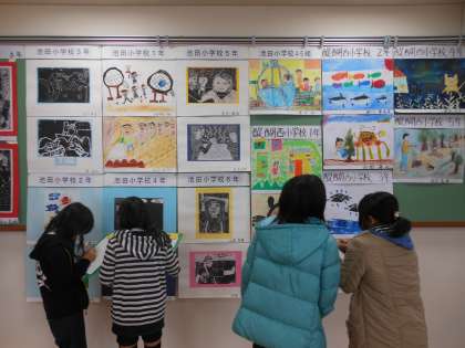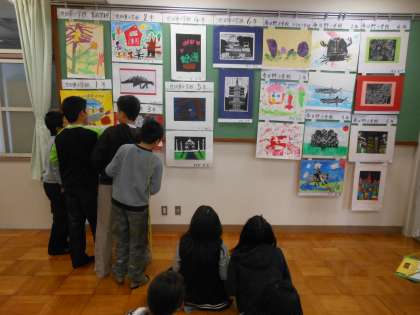 同じ支部の学校の優秀な作品が集う支部巡回展が,今日まで日野小学校多目的室に飾られていました。低学年のかわいらしい作品や,6年生の力強い版画の作品にさまざまな感想をもつ子供たち。いいなと思うところは,次の自分の作品に生かしていけるといいですね!