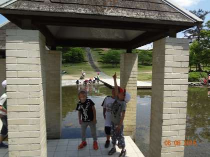 遊びの森では,タイムトンネルというすべり台を