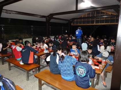 みさきの家に来て初めての夕食です。野外炊事場で食べましたが少し風が冷たく感じました。でも、子どもたちの食欲はなかなか旺盛でお代わりをする子どももたくさんいました。夕食の後はナイトハイクをしました。とてもこわかったかどうかは、帰ってから子どもたちに感想を聞いてみてください。最後の写真はナイトハイクからもどってきたときの写真です。この後は反省会をして、ぐっすり寝る予定です。ではおやすみなさい。