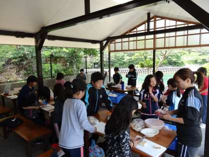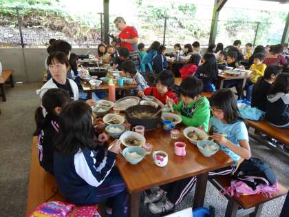 朝晩は冷え込みますが、昼間は暖かいです。さて、野外炊事無事終了しました。どの班もとてもおいしいすき焼き風煮を作ることができました。子どもたちが頑張っている様子、写真で伝わるでしょうか。楽しい思い出がまた一つできました。