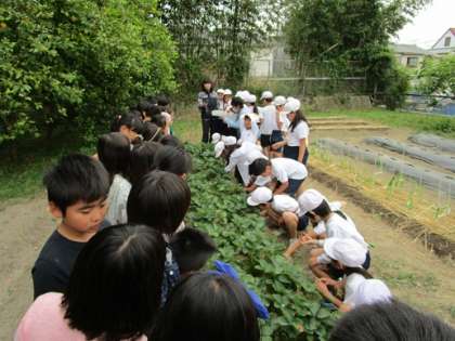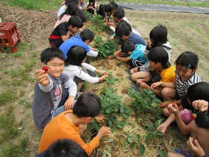 学校の畑のイチゴを収穫しました。
