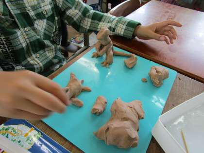 粘土べらを使って切ったり,いろんな形を作ってくっつけたりするのが楽しくて,子どもたちは粘土に夢中でした。