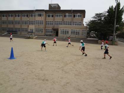 グループでバトントスの練習をしたり,作戦を立てたりしています。